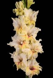 Светло-жёлтый или кремовый с розовым узором на нижних лепестках. Д=14 см, Г, Б=23/ 9, В=140 см, С=70, С-СП.